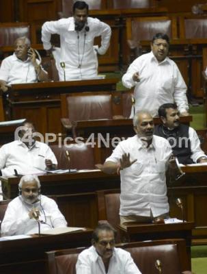 Photo Caption : Opposition Leaders arguing against Panchayat Raj Bill Amendment, during the assembly session at Vidhana Soudha, in Bangalore on Wednesday 12th June 2013