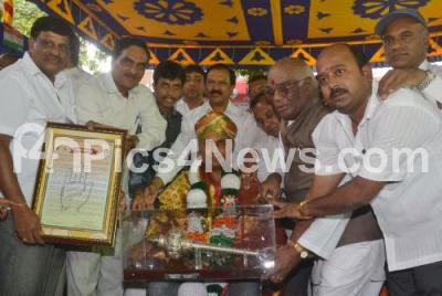 Photo Caption : Dinesh Gundu Rao, Food and Civil Supplies Minister being felicitated by Congress Members, during the Rahul Gandhi Birthday Celebration at KPCC, in Bangalore on Wednesday 19th June 2013