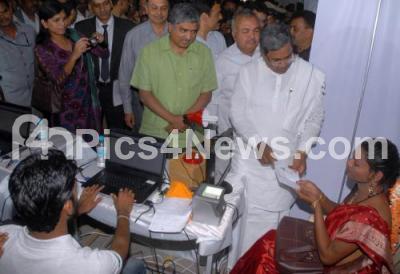 Photo Caption : K Siddaramaiah, Chief Minister seen giving Aadhar acknowledgement to a Transgender MN Uoormila, during the inauguration of Model Aadhaar Enrolment Centre, also seen Ramalinga Reddy, Transport Minister, CN Ashwath Narayan, MLA, Nandan Nilekani, Chairman, UIDAi at Malleshwaram, in Bangalore on Thursday 27th June 2013
