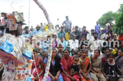 Photo Caption : Artist performs drama, during the Green Festival for Rack Pickers at Freedom Park, in Bangalore on 2nd of July 2013