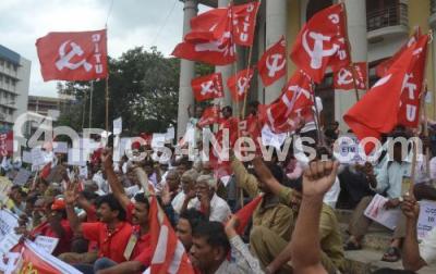 Members of KSRTC and BMTC Employees Association seen protesting to fulfill their various demands at Town Hall, in Bangalore on Thursday 25th July 2013