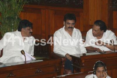 Photo Caption : MLAs DK Shivakumar with Ashwath Narayana and M Krishnappa seen at the Budget Session at Vidhana Soudha, in Bangalore on Thursday 25th July 2013