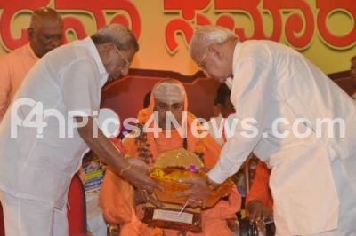 Photo Caption : Shri Shivarathri Deshikendra Mahawswamiji being felicitated by Shamanooru Shivashankrappa, Minister for Horticulture and Tipanna, MLC, during the Veerashaiva Lingayath Felicitation Ceremony at Palace Grounds, in Bangalore on Thursday 25th July 2013
