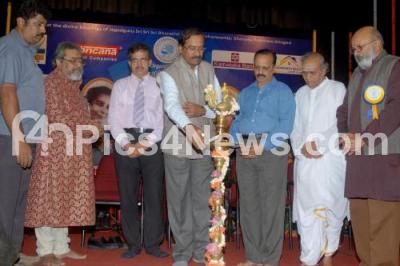 Photo Caption : Mallepuram G Venkatesh, Ragavendra Bhut, DGM, Karnataka Bank, Dr Prasad, Senior Actors Shiram and KSL Swamy, Dr PB Srinivas seen during the Divay Smruti Swaranjali programme in memory of Shamshad Begum, at Gayana Samaj, in Bangalore on Thursday 25th July 2013