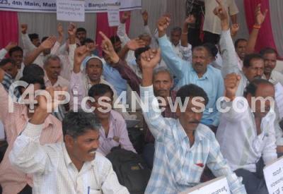 Photo Caption : Members of BMTC and KSRTC Employees Association seen protesting to fulfill their demands near Town Hall, in Bangalore on Monday 29th July 2013