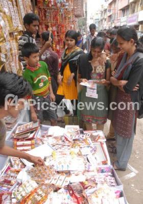 Students seen purchasing Rakhis for the forthcoming Raksha Bandhan Festival, in Mysore on Monday 19th August 2013