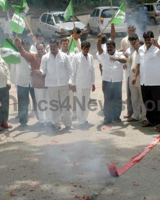 Photo Caption : JDS Party workers celebrating after their party win in urban election at JDS Office