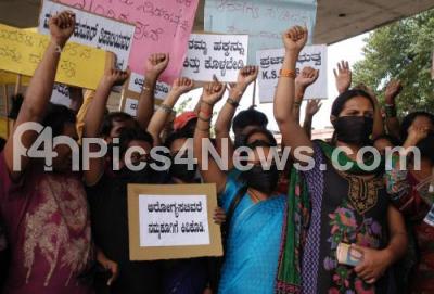Event Description : Members of Ashodaya Samithi, A Sex Workers Organization seen protesting against the HIV Prevention Communities, at Anand Rao Circle, Gandhi Statue, in Bangalore on Monday 26th August 2013