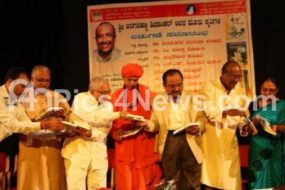 Dr Chandrashekhar Kambar, Jnanpith Awardee with Dr HS Venkatesh Murthy, Dr C Somashekhar, Jaraganahalli Shivashankar and others seen releasing Holay, Chataka and Vachana Dhyana books at Yavanika, in Bangalore on Sunday 1st September 2013