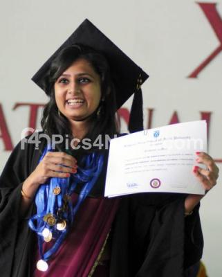 Photo Caption : Namrata Shah seen displaying her 16 Gold Medals, during the 21st Annual Convocation of National Law School of India University, in Bangalore on Sunday 1st September 2013