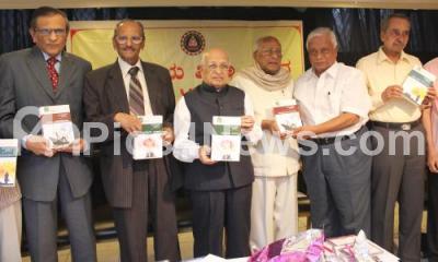 Photo Caption : Prof G Venkatasubbaiah with Prof KS Nisaar Ahmed, YN Gangadhar Shetty, MH Krishnaiah, CN Ramachandran, S Ramanuja and Anil Gokhak releasing the book Samarasave Jeevana, during the Gokak Award Presentation Ceremony at Bharthiya Vidya Bhavan, in Bangalore on 8th of September 2013