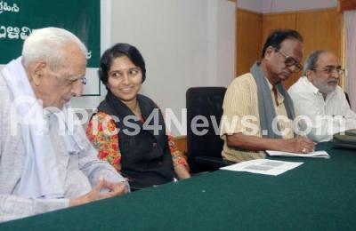 Photo Caption : HS Doreswamy, Freedom Fighter with Shamla Damle, Social Activist, Chandrashekhar Patil and MP Nadagowda, JDu President and others seen during the Save Democracy Convention demanding Electoral reforms at Legislative House, in Bangalore on Saturday 14th September 2013