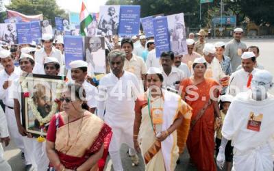 Event Description : Followers of Mahatma Gandhi took out a procession, celebrating Gandhi Jayanti at MG Road, in Bangalore on Wednesday 2nd October 2013