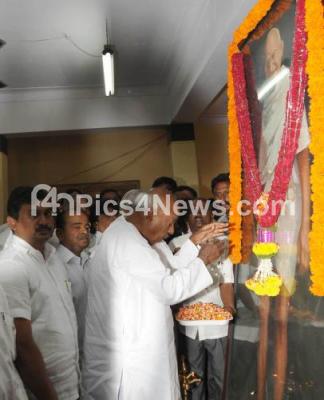 Event Description : HD Devegowda, JDs National President offering floral tribute to Mahatma Gandhi with party Members, celebrating Gandhi Jayanti, in Bangalore on Wednesday 2nd October 2013