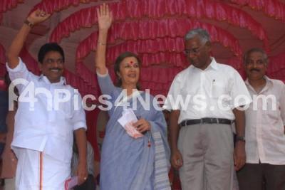 Photo Caption : Brinda Karat, Communist Politician of India seen waving hands to her supporters, who joined in the protest rally against UPA and NDA Government, at Freedom Park, in Bangalore on Tuesday 8th October 2013