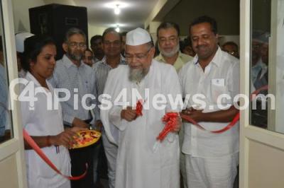 Photo Caption : UT Khader, Health Minister with Moulana Mufti Ashraf Ali, Dr Zafrul haq and others seen cutting tape to inaugurate the HBS Hospital Dialysis Centre at Shivajinagar, in Bangalore on Tuesday 8th October 2013