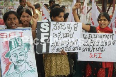 Event Description : Members of Students Federation of India Protest, demanding for a severe punishment for the Rapists, for committing such heinous crimes, at SBM Circle, in Bangalore on Saturday 19th October 2013