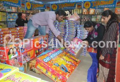 People seen shopping crackers for the upcoming Diwali festival at a stall near MG Road, in Bangalore on Wednesday 30th of October 2013