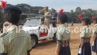 Photo Caption : Police Commissioner Ragavendra Auradkar reviewing the parade during 27th year Raising day, organized by Bangalore City Police Traffic warden at CAR Parade grounds, in Bangalore on Sunday 24th of November 2013