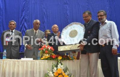 Photo Caption : Governor HR Bharadwaj with Lady Governor Prafulatha Bhardwaj, Retired Lt General Ramesh Halgali presenting memento to Manjunath Prasad, Managing Director, KSRTC, during the Incentive awards for the Armed Forces Flag Day Fund Collection 2013, celebrating Armed Forces Flag Day at Raj Bhavan, in Bangalore on Friday 6th December 2013