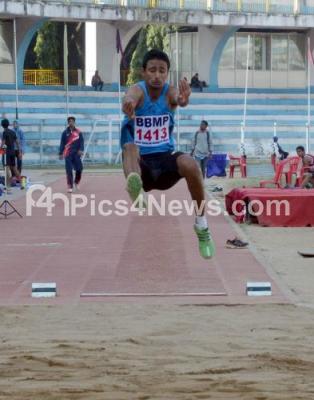 Photo Caption : Vikram Jeet Singh, performs Long Jump, during the 29th National Junior Athletics Championships 2013, organized by Karnataka Athletics Association at Kanteerva Stadium, in Bangalore on Friday 6th December 2013