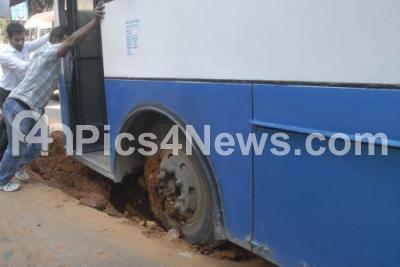 Event Name : BMTC Bus Stuck in a Trench at Cunningham Road