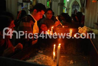 Photo Caption : Devotees lit Candles, celebrating Christmas Festival at St Philomenas Church, in Mysore on Wednesday 25th December 2013