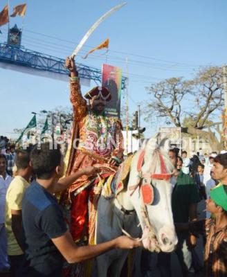Photo Caption : Man disguised as Tippu Sultan participate in the procession, celebrating Meeladun Nabi (Eid Milad), at Tannery Road, in Bangalore on Tuesday 14th January 2014