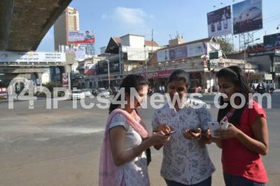 Photo Caption : Students checking their Wifi, during the inauguration of Namma Wi Fi Hotspots, at MG Road, in Bangalore on Friday 24th January 2014