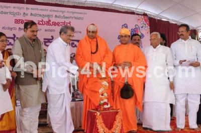 Photo Caption : Shri Shivarathri Deshikendra Mahaswamiji with Dr Veerendra Heggade, Ananth Kumar, MP with wife Tejaswini Ananthkumar and others seen lighting lamp to inaugurate the Mass Marriage Ceremony, celebrating Shivaratri Deshikendra swamiji Jatra Mahotsav, at Suttur Mutt, in Mysore on Tuesday 28th January 2014