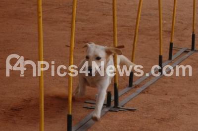 Photo Caption : Labrador performs, during the 104th and 105th All India Championship Dog Show, organized by Mysore Kennel Club, at Veterinary College, Hebbal, in Bangalore on Saturday 1st February 2014