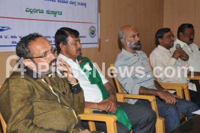 Photo Caption : Agni Sridhar with KS Puttanaiah, MLA and Indudhar Honnapur seen addressing media, during the Discussion of Dubbing, at Press Club, in Bangalore on Saturday 1st February 2014