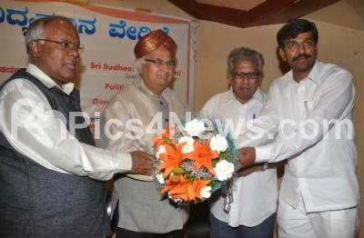 Photo Caption : Sudheendra Kulkarni, Chairman, Observer Research Foundation being felicitated by PGR Sindhya and Raja Shaileshchandra Gupta, during the Talk on Political Scenario during and after General Elections 2014, at Mahaveer Jain College, in Bangalore on Saturday 8th February 2014