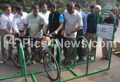 Photo Caption : Dinesh Gundu Rao, Food and Civil Supplies Minister with NA Haris, MLA inaugurated the Free Cycle Parking Spot, at Cubbon Park, in Bangalore on Saturday 22nd February 2014
