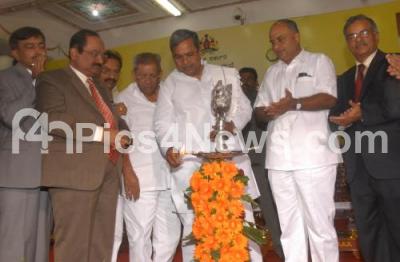 Photo Caption : K Siddaramaiah, Chief Minister with HS Mahadev Prasad, Co Operation Minister, Shamanuru Shivashankarappa, Minister of Horticulture and Agriculture Marketing, Kaushik Mukherjee, Chief Secretary, Dr C Somashekhar and other lighting lamp to inaugurate Unified Market, facilitating purchase of products from different markets through a unified license and establishments of Rashtriya e market services, at Banquet Hall, Vidhana Soudha, in Bangalore on Saturday 22nd February 2014