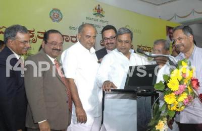 Photo Caption : K Siddaramaiah, Chief Minister with HS Mahadev Prasad, Co Operation Minister, Shamanuru Shivashankarappa, Minister of Horticulture and Agriculture Marketing, Kaushik Mukherjee, Chief Secretary, Dr C Somashekhar and other launching the website of Unified Market, facilitating purchase of products from different markets through a unified license and establishments of Rashtriya e market services, at Banquet Hall, Vidhana Soudha, in Bangalore on Saturday 22nd February 2014