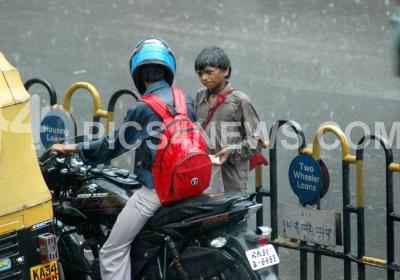 A boy selling ear buds in a rain, in Bangalore on Thursday 3rd July 2008.