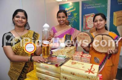 Photo Caption : Volunteers showcasing Sandalwood products, during the International Seminar on Sandalwood Current Trends and Future Prospects, at Indian Institute of Science, in Bangalore on Wednesday 26th February 2014