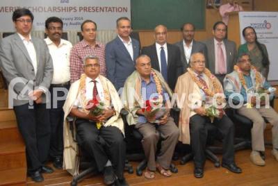 Photo Caption : Dayanand Pai, Entrepreneur felicitated beneficiaries, during the Distribution of BMSCEAA merit Scholarships to the toppers at BMS College of Engineering, in Bangalore on Wednesday 26th February 2014