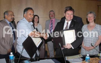 Event Description : Kaushik Mukherjee, Chief Secretary exchanging MoUs of Bilateral Co Operation Agreement with Iain Wright, MP, Shadow Industry Minister, United Kingdom, at Vidhana Soudha, in Bangalore on Tuesday 4th March 2014