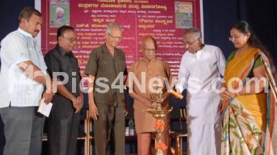 Photo Caption : Go Ru Channabasappa with Dr Hampa Nagarajaiah, Dr Anupama Priyadarshini, Dr NR Nayaka and others lighting lamp to inaugurate the Discussion programme on Research of Gouligara Cultural, at Kannnada Sahitya Parishat, in Bangalore on Monday 10th March 2014