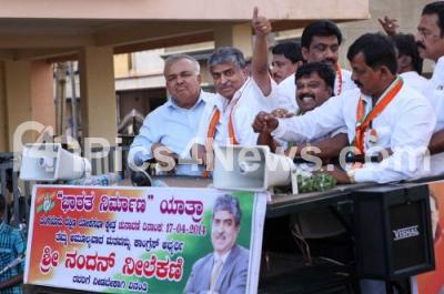 Nandan Nilekani, Bangalore South Candidate with Ramalinga Reddy, Bangalore District in charge, during the Congress Road Show, at Jagaranahalli in Bangalore on Wednesday 19th March 2014