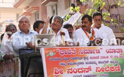 Photo Caption : Nandan Nilekani, Bangalore South Candidate with Ramalinga Reddy, Bangalore District in charge, during the Congress Road Show, at Jagaranahalli in Bangalore on Wednesday 19th March 2014