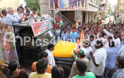 Event Description : Nandan Nilekani, Bangalore South Candidate with Ramalinga Reddy, Bangalore District in charge, during the Congress Road Show, at Jagaranahalli in Bangalore on Wednesday 19th March 2014