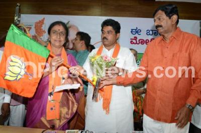 Photo Caption : Jyothi Reddy, Former MLA joined Bharatiya Janata Party, in presence of BJP Leaders R Ashoka and Bachegowda, at BJP office, in Bangalore on Sunday 30th March 2014