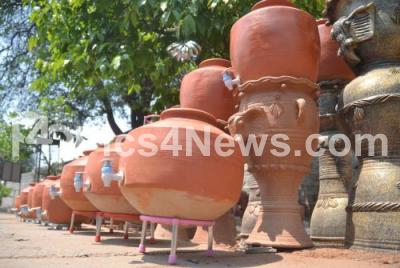 Photo Caption : Mud Pots being sold for cooling the water in the blazing Summer, at Vasanthnagar, in Bangalore on Sunday 30th March 2014