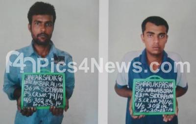 Photo Caption : File Photo of Jaffer Sadik and Sharuk Pasha were arrested by Bangalore City Police, as they are accused in the Murder in Siddapura, the photo was presented during the press conference, at Police Commissioner Office, in Bangalore on Tuesday 1st April 2014