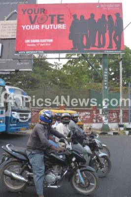 Voting awareness Banners installed all over the City, ahead of Loksabha Elections, at Kumarakrupa Road, in Bangalore on Tuesday 1st April 2014
