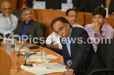 Photo Caption : SD Shibulal, Chief Executive Officer seen with Rajeev Bansal, Chief Financial Officer, during the Infosys Q4 Financial Results 2014, at Infosys campus in electronic city, in Bangalore on Tuesday 15th April 2014