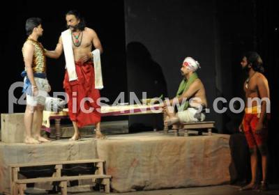 Photo Caption : Ranga Payana Artists performing Vondanondu Kaladalli Drama, at Ravindra Kalakshetra, in Bangalore on Saturday 19th April 2014